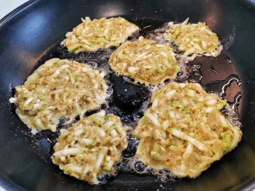 Выложить столовой ложкой смесь на раскаленную сковороду с маслом.