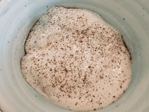 Добавить тыквенную муку и снова перемешать.