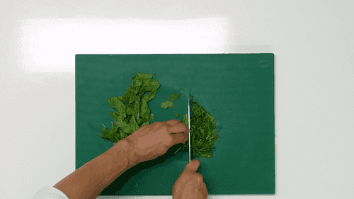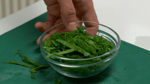 Так же поступить со шпинатом — избавить от жестких стеблей и нарубить.