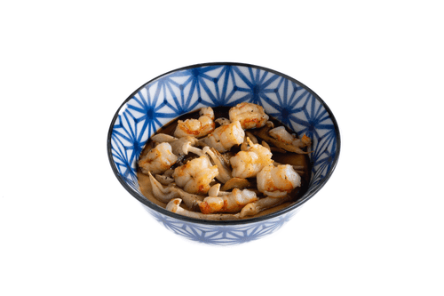 Чаван-муши — изысканное блюдо японской кухни, воплощающее гармонию вкусов и текстур. Его история уходит корнями в традиционные японские кулинарные техники, где паровая обработка подчеркивает естественный вкус ингредиентов. Нежная яичная основа, пропитанная ароматным даси, становится бархатистой и воздушной. Добавление креветок и грибов вешенки и шимеджи придает глубину морского и грибного вкуса, создавая утонченное сочетание. Соевый соус и мирин дополняют композицию тонкой сладостью и умами. Чаван-муши подают горячим, его мягкость и насыщенность делают его популярным как закуска или легкое блюдо, идеально подходящее для неторопливой дегустации японской гастрономии.