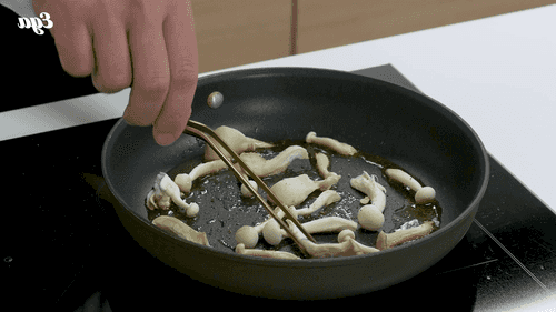 Разогреть на сковороде оливковое масло. Порвать вешенки, шимиджи разделить, посолить и поперчить и обжарить их до золотистого цвета.