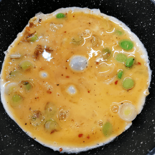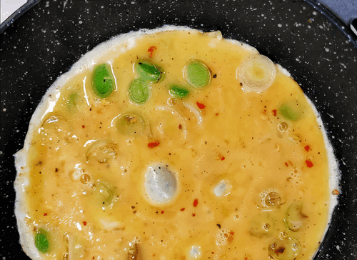 Острая яичница с луком-пореем