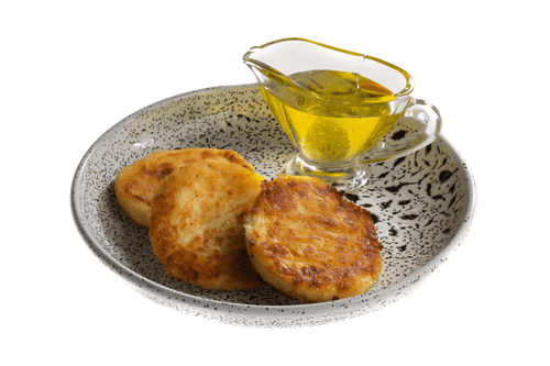 Решим эту головоломку раз и навсегда: корень «сыр» (или «сир») в названии этого блюда в большинстве славянских языков обозначает различные виды кисломолочных продуктов, в том числе и творог, но в русском языке довольно рано перестал употребляться в этом смысле. Сырники еще называют творожниками, но суть от этого не меняется: качественный творог, немного муки, яйцо и сахар. Также во время приготовления в сырники хорошо добавлять манку: она помогает держать форму и не превращаться в творожное месиво на сковороде. Перед подачей можно немного подогреть мед: он станет более податливым и интересным на вкус.