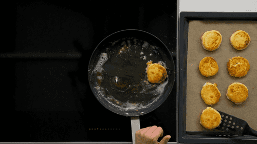 Обжарить сырники с обеих сторон до золотистой корочки.