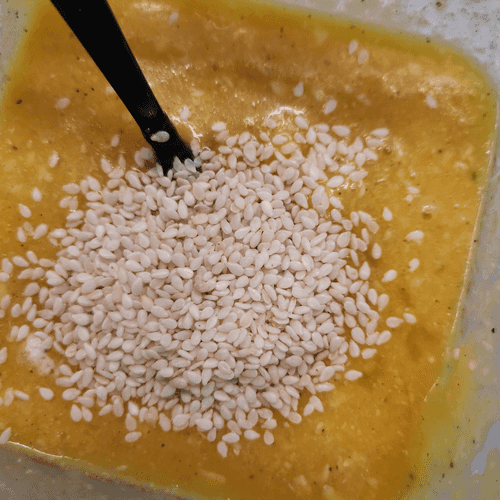 Всыпать кунжут.