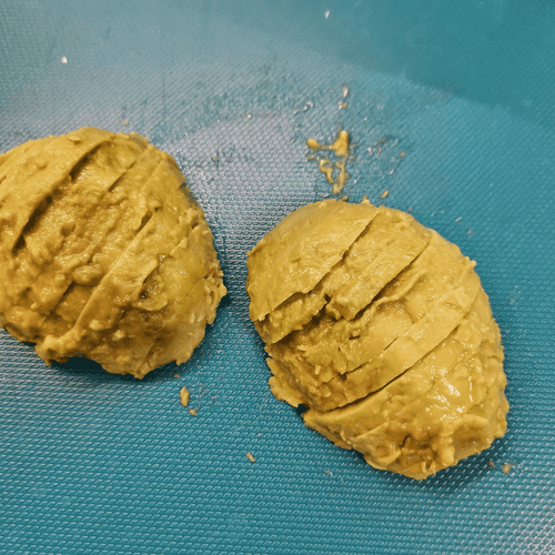 Получившийся хлеб нарезать ломтиками толщиной около 1,5 см.