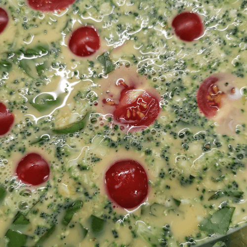 Фритатта с брокколи и базиликом — это яркое воплощение итальянской кулинарной традиции, сочетающее в себе простоту и утонченность вкуса. Это блюдо берет свое начало в деревенских кухнях Италии, где фритатта стала способом использовать простые ингредиенты, создавая насыщенные и ароматные блюда. Нежные яйца в сочетании со сливками придают фритатте мягкость, а брокколи и базилик вносят свежие, травянистые нотки. Острые маринованные перцы добавляют пикантность, а помидоры черри — легкую сладость. Сырная корочка из твердого сыра и пармезана делает текстуру блюда насыщенной и тягучей. Идеальна как самостоятельное блюдо для завтрака или легкого ужина, фритатта также прекрасно сочетается с свежими салатами и хрустящим хлебом. Это простое, но изысканное блюдо, которое можно подать как в повседневной трапезе, так и на праздничном столе.