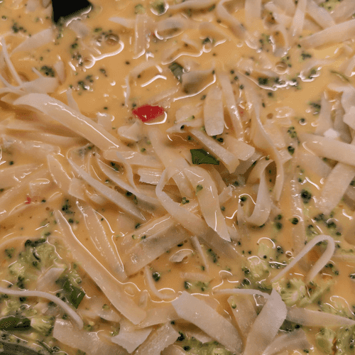 Перец добавить в массу, затем присыпать натертым на крупной терке сыром. Перемешать.