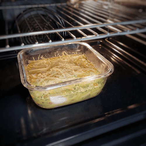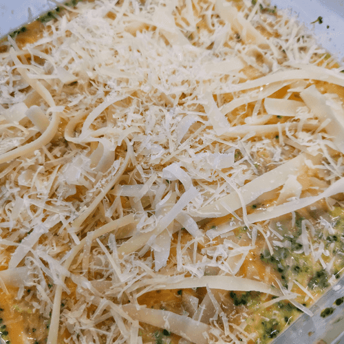 Сверху присыпать натертым на мелкой терке пармезаном. Не перемешивать.