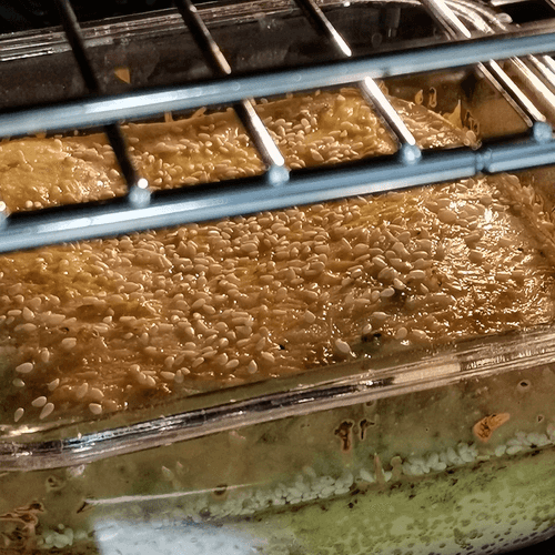 Через 30 минут присыпать кунжутом и оставить готовиться еще на 10 минут.