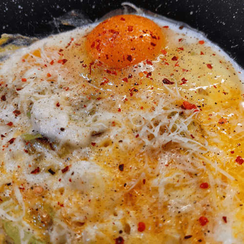 Сочная луковая яичница с сыром — это изысканное блюдо французской кухни, которое сочетает в себе нежность яиц, сладковатый вкус лука-порея и насыщенные нотки пармезана. Французские повара издавна ценят простоту и гармонию вкусов, и этот рецепт — яркий тому пример. Лук-порей, обжаренный на сливочном масле, становится мягким и ароматным, дополняя воздушные яйца, которые бережно смешиваются, а затем покрываются слоем растопленного сыра. Легкая пикантность соуса шрирача и черного перца добавляет глубины вкусу, а майонез привносит сливочную текстуру. Это блюдо можно подать на завтрак или легкий ужин, сочетая его с хрустящим багетом и свежими овощами. Изысканное, но доступное в приготовлении, оно способно порадовать даже самых взыскательных гурманов.