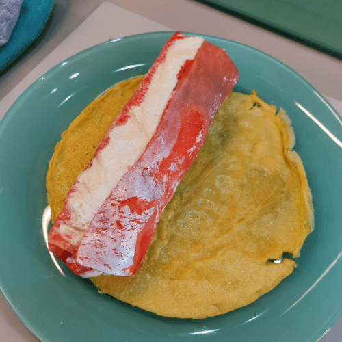 Яичный рулет с лососем и авокадо — утонченное блюдо японской кухни, которое сочетает нежность рыбы, кремовую текстуру творожного сыра и свежесть авокадо. Этот рулет напоминает традиционные японские роллы, но вместо риса используется воздушный яичный блинчик, который придает легкость и особенный вкус. Солоноватый лосось гармонично дополняется сливочным сыром, а кусочки авокадо добавляют мягкость. Семена кунжута завершают композицию, добавляя ореховые нотки. Блюдо прекрасно подходит для праздничного стола или легкого перекуса, радующего изысканностью и балансом вкусов.