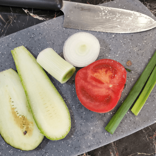 Овощи промыть и просушить. Отрезать необходимое количество.