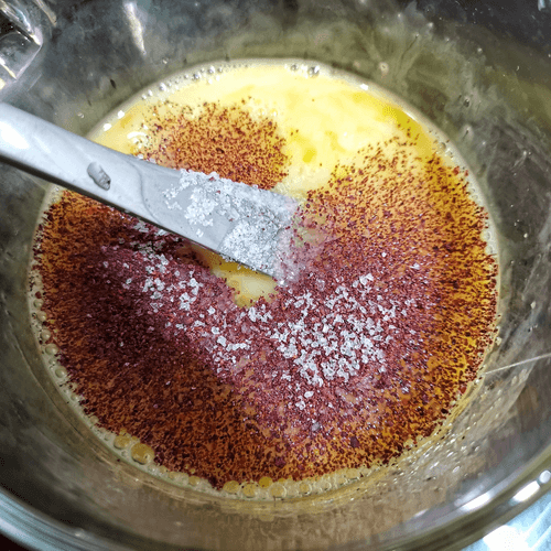 Яйца смешать с солью и приправой сумах.