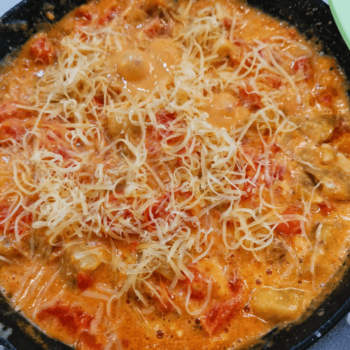 Через 3–5 минут добавить пармезан.
