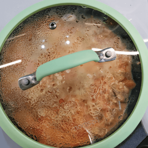 Накрыть крышкой и немного убавить огонь.