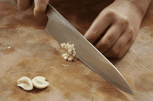 Измельчить чеснок.