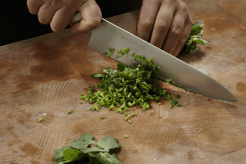 Нарезать кинзу.