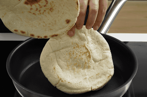 Пока шакшука готовится, подсушить на сковороде лепешки или хлеб.