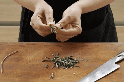 С розмарина оборвать листики и мелко порубить.