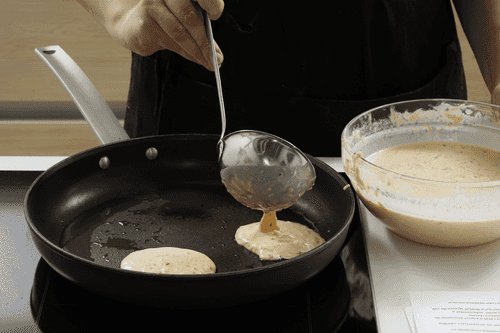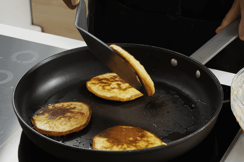 Жарить 2 минуты с одной стороны, пока тесто не схватится и не покроется золотистой корочкой. Перевернуть и жарить еще 1 минуту с другой стороны.