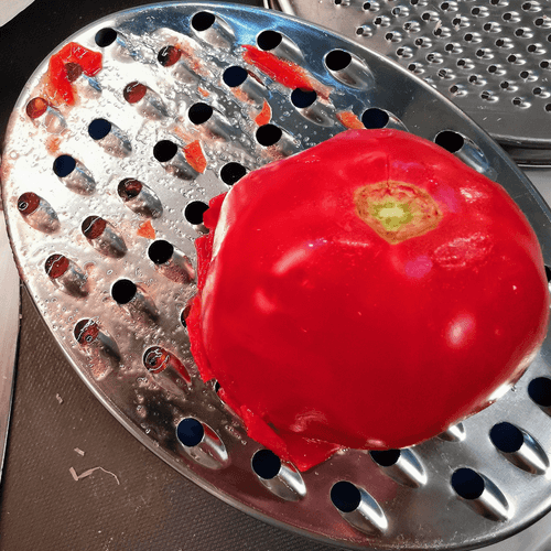 Выложить томатную смесь на лепешку и присыпать ложкой тертого сыра.