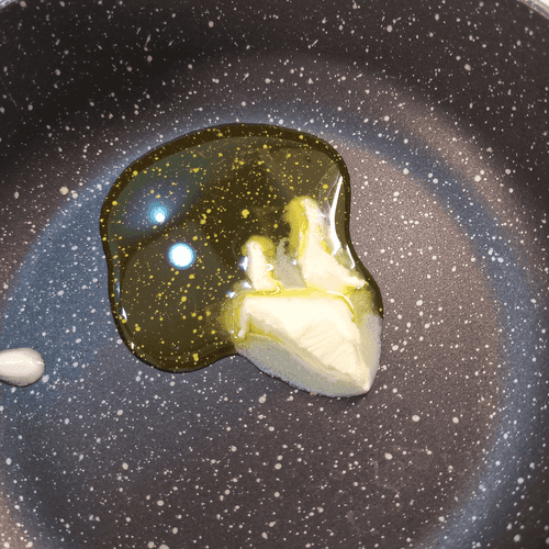 Разогреть на сковороде сливочное и горчичное масло.