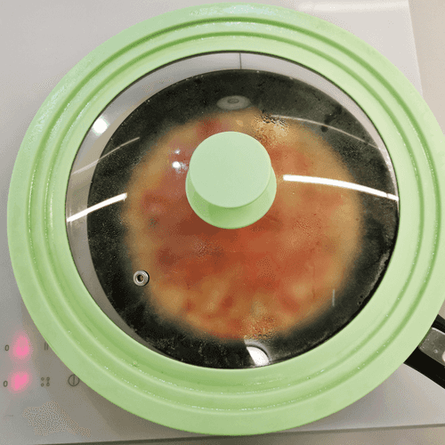 Через 2–3 минуты убавить огонь и накрыть крышкой.