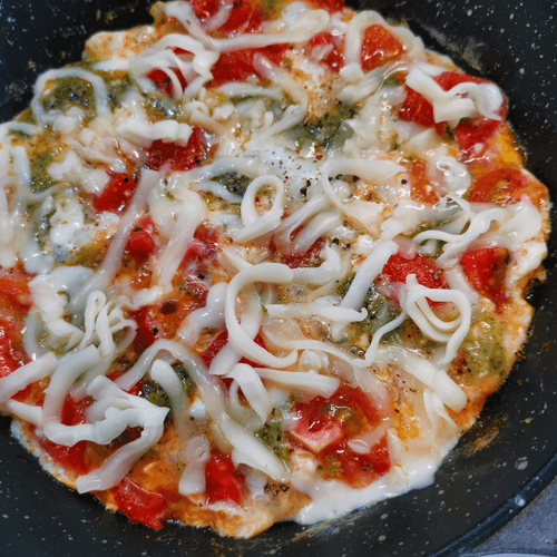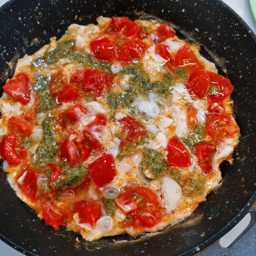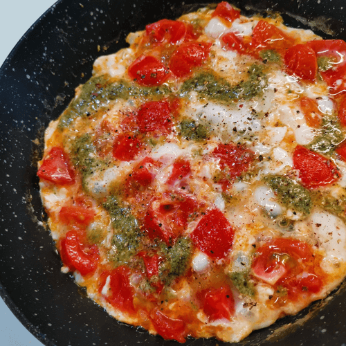 Яичница по-итальянски — это истинное воплощение средиземноморской кулинарной утонченности. В этом блюде гармонично сочетаются нежные яйца, сочные помидоры и ароматный соус песто, создавая великолепный баланс вкусов. Растопленный сыр моцарелла придает блюду кремовую текстуру, а морская соль и свежемолотый черный перец подчеркивают его насыщенность. Это не просто завтрак — это путешествие в солнечную Италию, где простота и изысканность идут рука об руку. Подавать яичницу можно с хрустящим багетом или свежими листьями базилика, усиливая ее средиземноморский характер. Идеально подходит для легкого, но сытного начала дня!