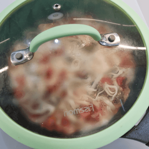 Накрыть крышкой на минуту, чтобы сыр расплавился.
