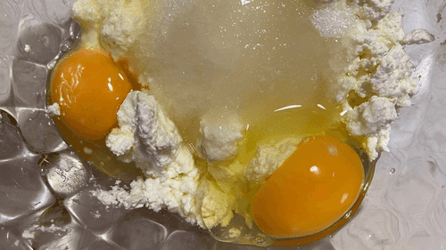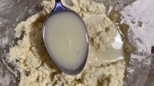 Насыпать муку и перемешать до однородности. Масса не должна получиться слишком густой.