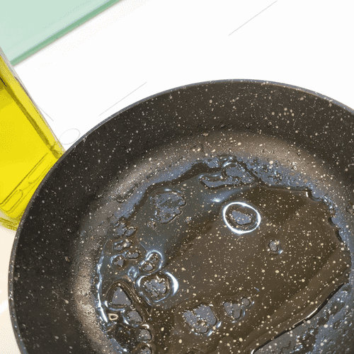 В глубокой сковороде разогреть оливковое масло.