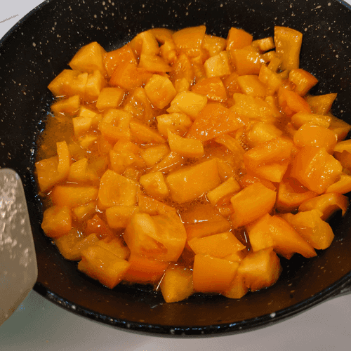 Через 3 минуты перемешать и убавить огонь до среднего.