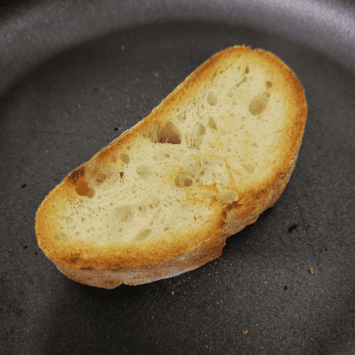 На сухую раскаленную сковороду выложить кусочек чиабатты.