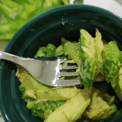 Мякоть авокадо размять вилкой.