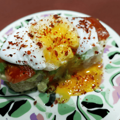 Брускетта для завтрака — это утонченное сочетание простоты и вкуса, пришедшее из итальянской кухни. Хрустящий кусочек чиабатты, подрумяненный на сухой сковороде, становится идеальной основой для нежного авокадо, сбрызнутого освежающим лимонным соком. Майонез и дижонская горчица добавляют пикантность, а свежие слайсы помидора привносят сочность и баланс. Завершающий акцент — яйцо пашот, приправленное морской солью и хлопьями чили, которое дарит утренней трапезе элегантность и насыщенность вкуса. Эта брускетта идеально подходит для неспешного завтрака, пробуждая рецепторы и заряжая бодростью. Благодаря своему питательному составу, она не только вкусная, но и полезная, а ее гармоничное сочетание текстур и ароматов делает ее великолепным выбором для начала дня.