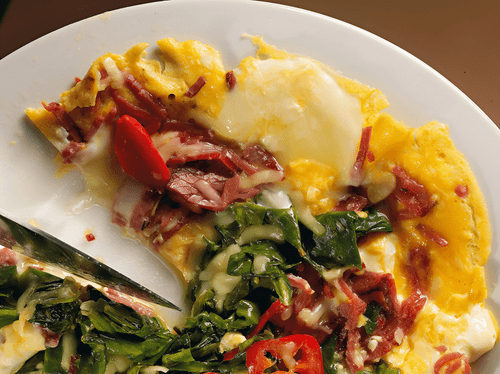 Омлет с бастурмой и шпинатом