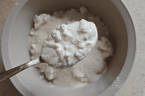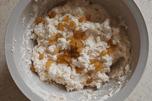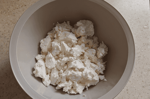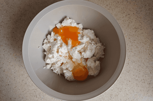 В творожную смесь добавить 5 столовых ложек сметаны.