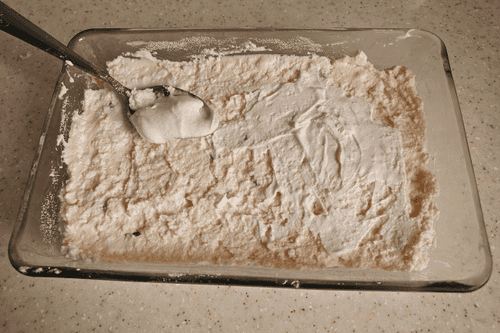 Форму для запекания смазать сливочным маслом и присыпать манной крупой.