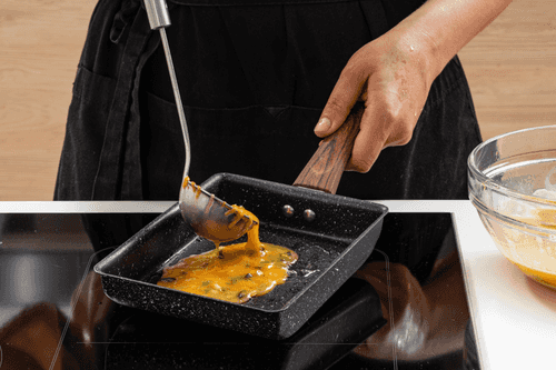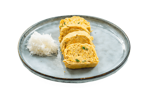 Тамагояки – это традиционный японский омлет, приготовленный особым способом. Его история восходит к эпохе Эдо, когда японские кулинары начали экспериментировать с приготовлением яиц. В отличие от привычных омлетов, тамагояки готовится путем многослойного заворачивания яичной массы, что придаёт ему особую текстуру – нежную, воздушную, но при этом упругую. Вкус этого блюда богатый и слегка сладковатый благодаря добавлению мирина и соевого соуса. Морковь и зеленый лук добавляют свежесть и легкую хрусткость, а даши усиливает глубину вкуса. Тамагояки подают нарезанным на аккуратные кусочки, часто с тертым дайконом, который привносит освежающую пикантность. Это блюдо идеально подходит как самостоятельная закуска или как дополнение к традиционному японскому завтраку.