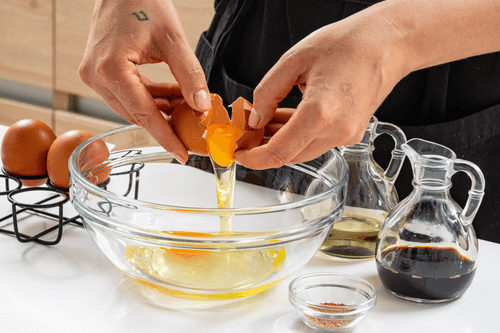 В миске взбить венчиком яйца с соевым соусом, мирином и порошком даши.