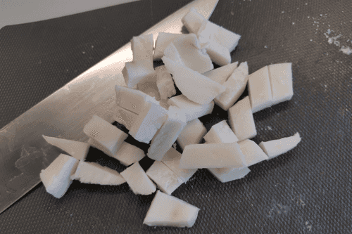Сало мелко нарезать.