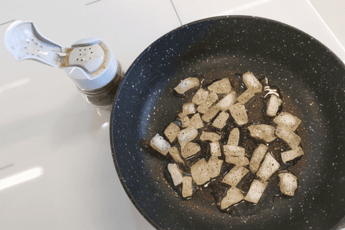 Перемешать и обжаривать еще 2–4 минуты до румянца.