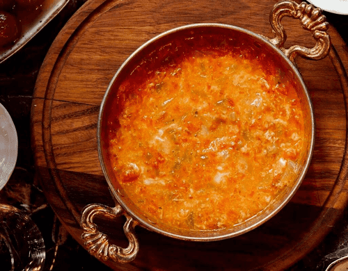 Менемен с добавлением сладкого перца — это блюдо, вдохновленное турецкой кухней, которое предоставил шеф-повар Якуб Гюмюш из ресторана Eleven Junior. Оно сочетает в себе нежную текстуру яиц и сладость перца, создавая гармоничный вкус, который радует как глаз, так и желудок. Это идеальное угощение для завтрака или легкого ужина, позволяющее насладиться яркими ароматами и насыщенными оттенками.