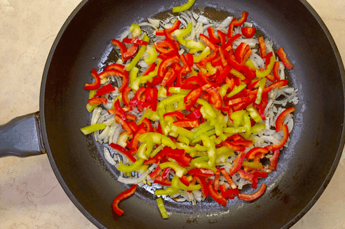 Добавить перец, обжаривать на среднем огне 3 минуты.