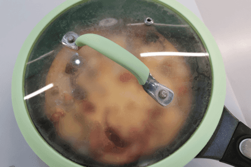Через 1–2 минуты перевернуть и снова поперчить. Убавить огонь до среднего.