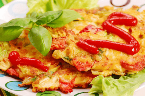 Пикантный омлет с перцем, сыром грюйер и луковым соусом