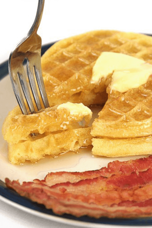 Подавайте вафли с беконом.