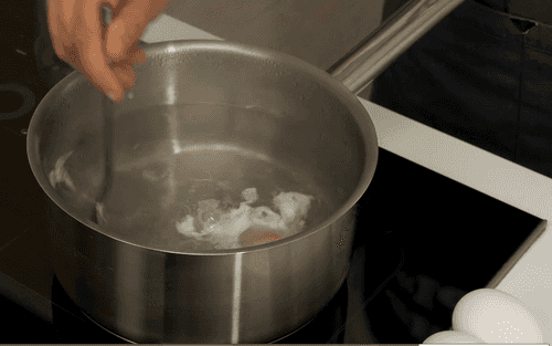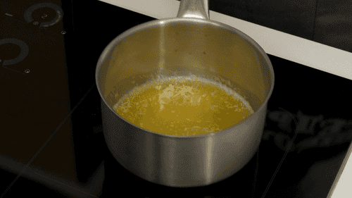Сделать голландский соус. Для этого растопить сливочное масло. Масло должно раствориться и подгореть до коньячного цвета. После снять масло и процедить, пока оно горячее, через мелкое металлическое сито.