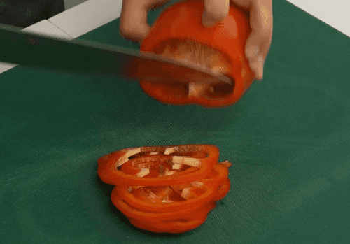 Нарезать помидор и сладкий перец